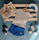 تیشرت طوسی راه راه شلوارک آبی 12 تا 24 ماه
