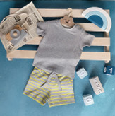 تیشرت طوسی شلوارک زرد راه راه 6 تا 12 ماه